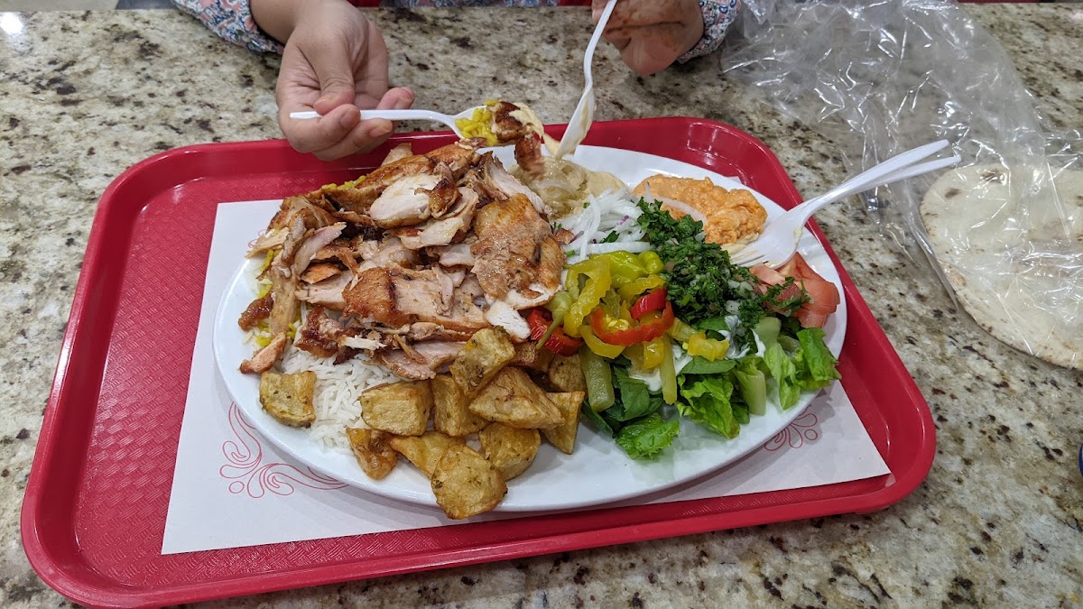 I ordered the chicken platter regular size for my first visit. REALLY GOOD stuff right here I would say. My go to shawarma has always been Shawarma Palace, and I'm having a hard time finding its equal. But this place might be one of them. The prices are about the same. Portion same ratio. The chicken is exquisite, tender and loads of tastes. They also give you more options on sauce. They only give you one pita, but they politely added an extra after I ask. The pitas here feel more fresh. All in all, if you are a shawarma enthusiast I strongly recommend trying this place. The place itself is clean, friendly staff, TV on sport channel, and fast service. I will definitely go back sooner than later. If I had to mention a negative point I would say that the young guy that served me is hard to hear, he should try raising his voice a bit more.