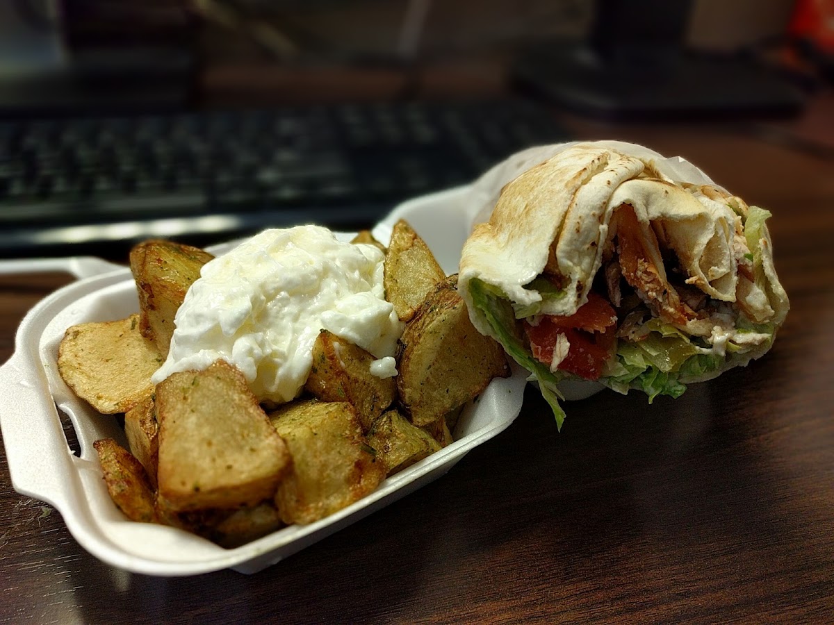 Good spot for a fresh shawarma sandwich and a side of potato with a tasty garlic sauce. The big sandwich comes with potatoes, a drink in a can and a baklava for about 20$. Smooth customer service, and tables were clean. Recommended.